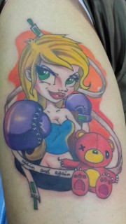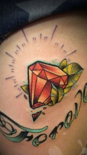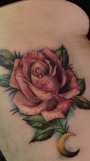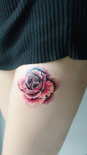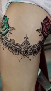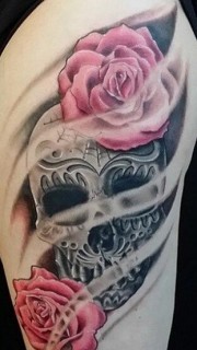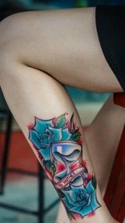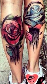 腿部欧美彩色骷髅玫瑰花纹身图案