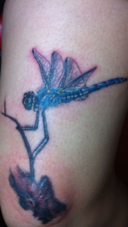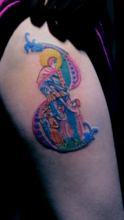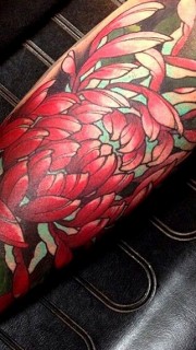 腿部个性彩色传统牡丹骷髅蛇纹身图片