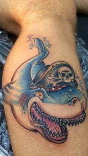 腿部可爱的卡通海马蝴蝶结纹身图案