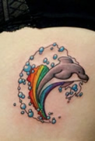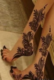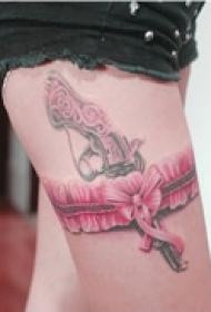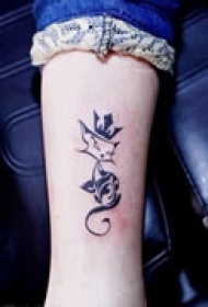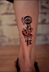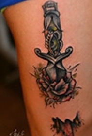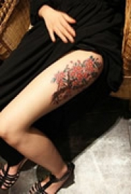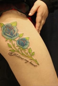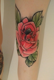 腿部纹身 女生腿部彩色的玫瑰纹身图片