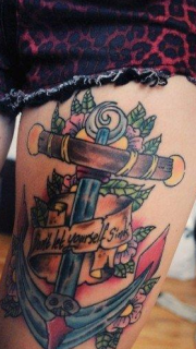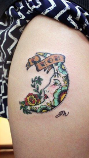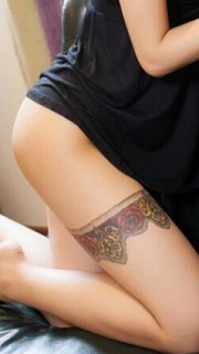 小美女大腿漂亮精致的钻石玫瑰纹身图