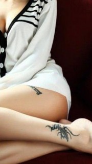 性感诱惑迷人比基尼美女腿部蝴蝶纹身