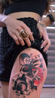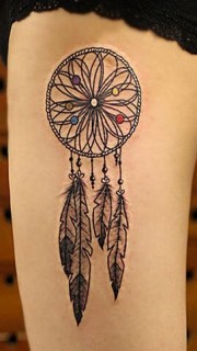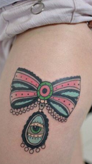 美女腿部唯美好看的蕾丝蝴蝶结纹身图