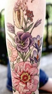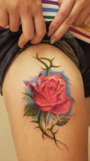 美女腿部漂亮好看的彩色玫瑰花纹身图