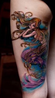 美女腿部漂亮时尚好看的美人鱼纹身图