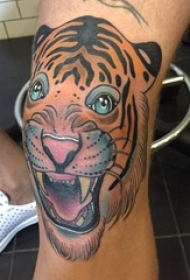 男生腿部彩绘渐变简单抽象线条小动物老虎纹身图片