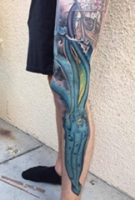 纹身腿部 男生腿部彩色的鱿鱼纹身图片