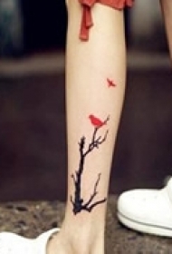 小鸟3d纹身 男生腿部黑色的小鸟纹身图片
