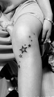 美女膝盖上小星星纹身图案