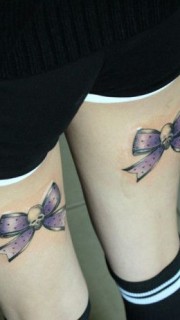 美女腿部时尚的蝴蝶结纹身图案