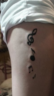 美女腿部精美的图腾音符纹身图案