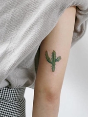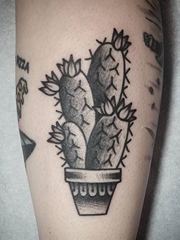 女生手臂上黑色点线几何线条仙人掌纹身图片
