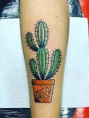 小腿上干净的仙人掌纹身图片