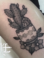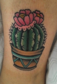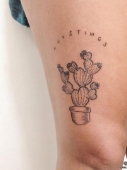 大腿仙人掌花朵点刺纹身图案