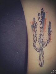 大臂仙人掌线条泼墨彩色纹身图案