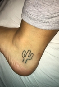 男生脚踝上黑色简单线条植物仙人掌纹身图片