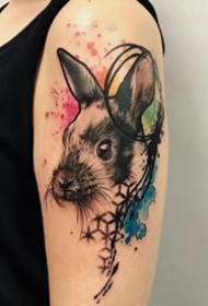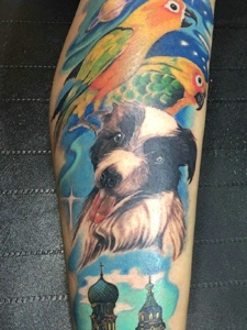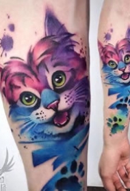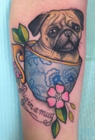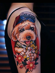 潮流纹身-色彩可爱的小猫小狗手臂纹身图片