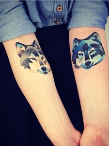 女生手臂上黑色素描点刺技巧创意可爱小狗纹身图片
