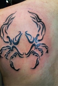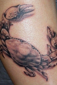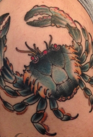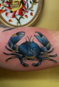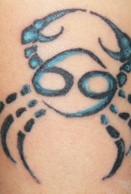 手臂上黑色与蓝色线条的螃蟹纹身图案