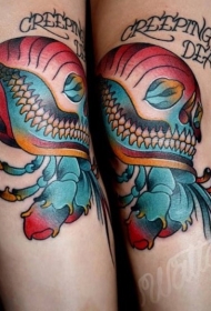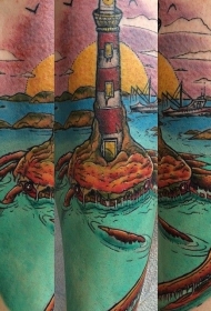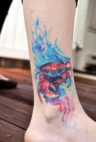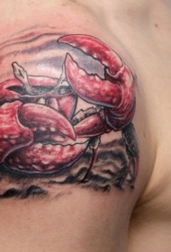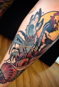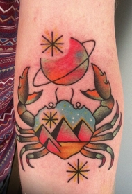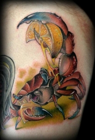 手臂现代风格的彩色螃蟹海螺纹身图案