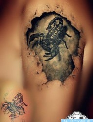蝎子纹身图片:一张腰部图腾蝎子纹身图案