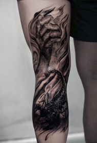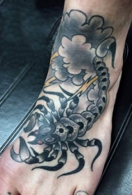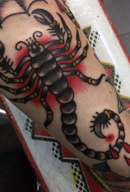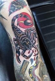令人难以置信的黑白逼真蝎子与火焰手臂纹身图案