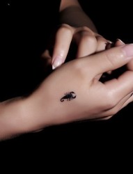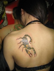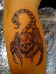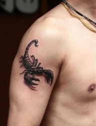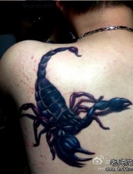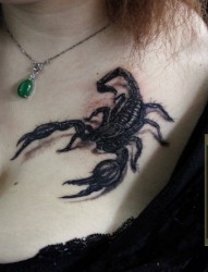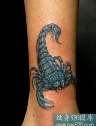两张腿颈部的蓝黑蝎子纹身图案欣赏