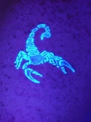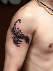 两张腿颈部的蓝黑蝎子纹身图案欣赏