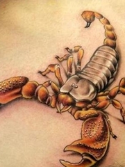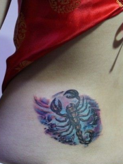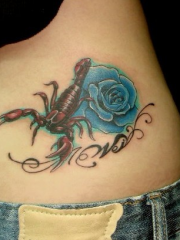 女生腰部彩绘蝎子蓝玫瑰刺青