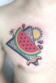 纹身胸部男 男生胸部三角形和西瓜纹身图片