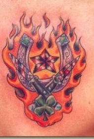 背部彩色燃烧的马蹄纹身图案