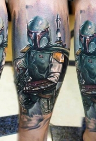 新风格的彩色腿部星球大战士兵纹身