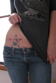 腰部彩色五角星和凯蒂猫纹身图片