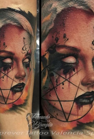 腿部新学校的风格令人毛骨悚然的恶魔女人纹身