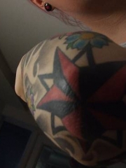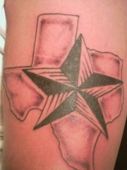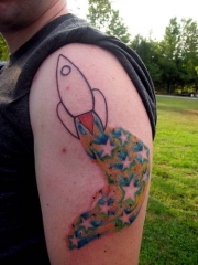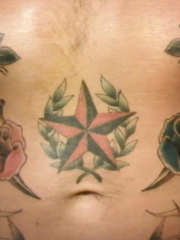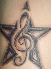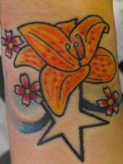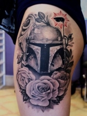 大腿黑灰纹星球大战士兵与鲜花纹身图案
