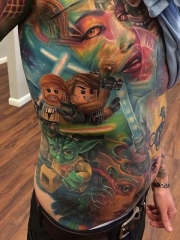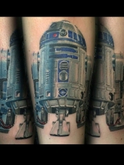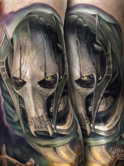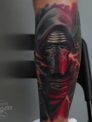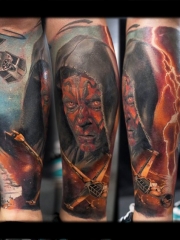 腿部彩色星球大战黑暗西斯英雄纹身图案
