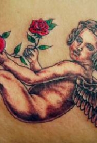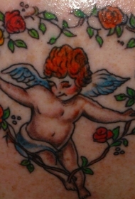 可爱的小天使心形和玫瑰纹身图案