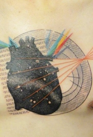 胸部超现实主义风格的彩色心脏字母几何纹身图案