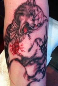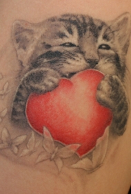 小猫心形与蝴蝶肩部纹身图案