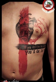 胸部彩色人体心脏字母纹身图案