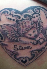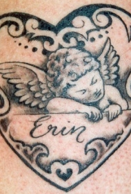 心形和睡着的小天使纹身图案