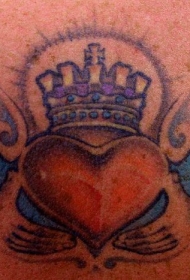 背部彩色有翅膀的爱心纹身图案