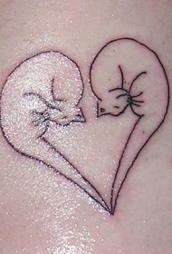两只猫组合心形纹身图案
