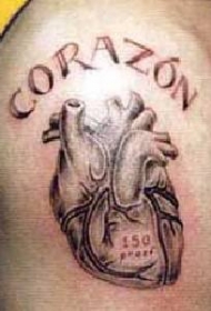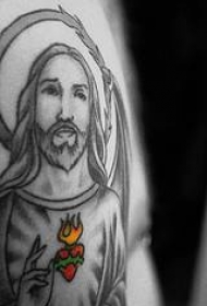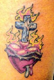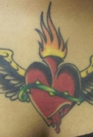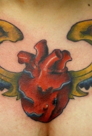 胸部彩色乌克兰的圣心和翅膀纹身图片