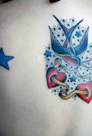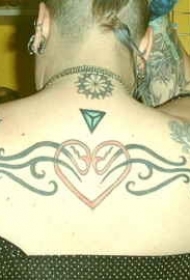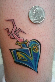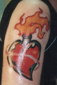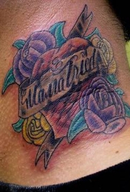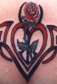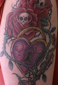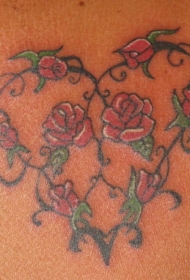 肩部彩色玫瑰和荆棘藤蔓爱心纹身图案