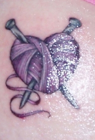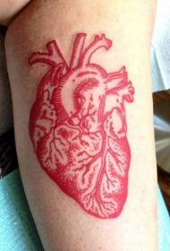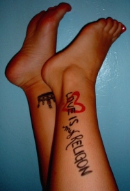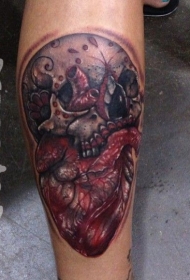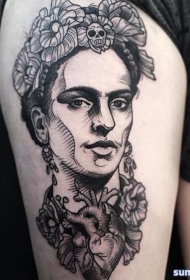 腿部黑色雕刻风格的女人肖像与人心脏纹身