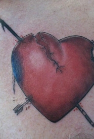 腰侧彩色划破皮肤与骨骼心脏纹身