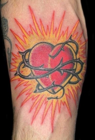 腿部色彩鲜艳的玫瑰心脏纹身图片