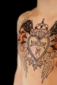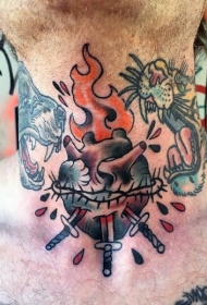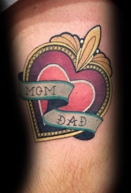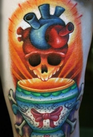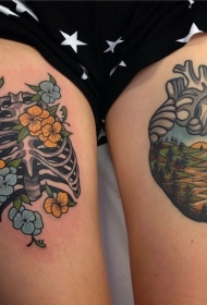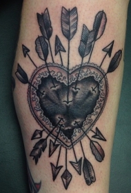 手臂棕色心形亲吻骨架夫妇纹身图片