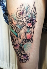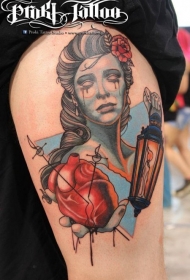 腿部新学校风格彩色神秘的哭泣的女人纹身